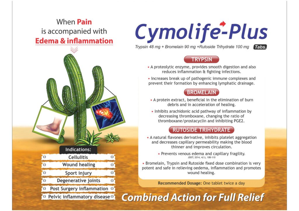 Cymolife Plus Tablets from Minova Life Sciences combine the natural anti-inflammatory and healing properties of Trypsin, Bromelain, and Rutoside, offering a comprehensive approach to managing pain, swelling, bruising, and post-operative recovery. These ingredients work synergistically to speed up tissue repair, reduce capillary permeability, and promote faster healing without gastric side effects often seen with NSAIDs.