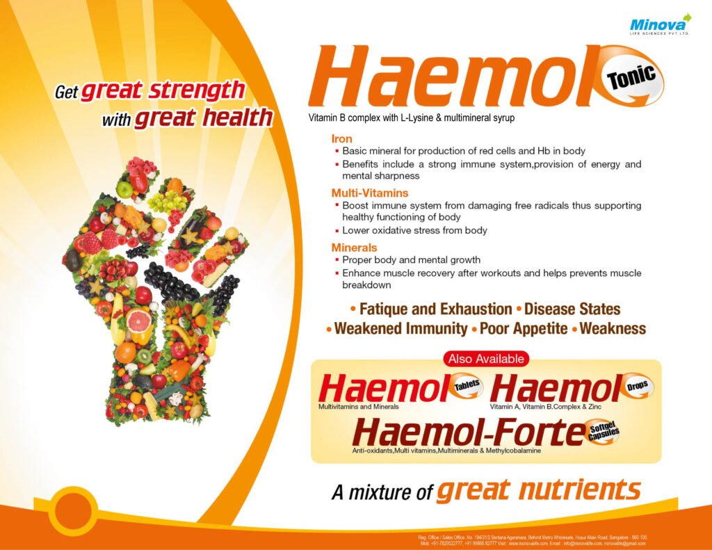 Many individuals today suffer from low energy levels, poor appetite, and micronutrient deficiencies due to modern diets and stress. Haemol-225 ml Syrup offers a complete nutritional solution by combining Vitamin B Complex, L-Lysine, and multiminerals to support natural energy, metabolism, and immunity. Whether you’re a parent looking to boost your child’s growth or recovering from illness, Haemol is your go-to daily tonic.