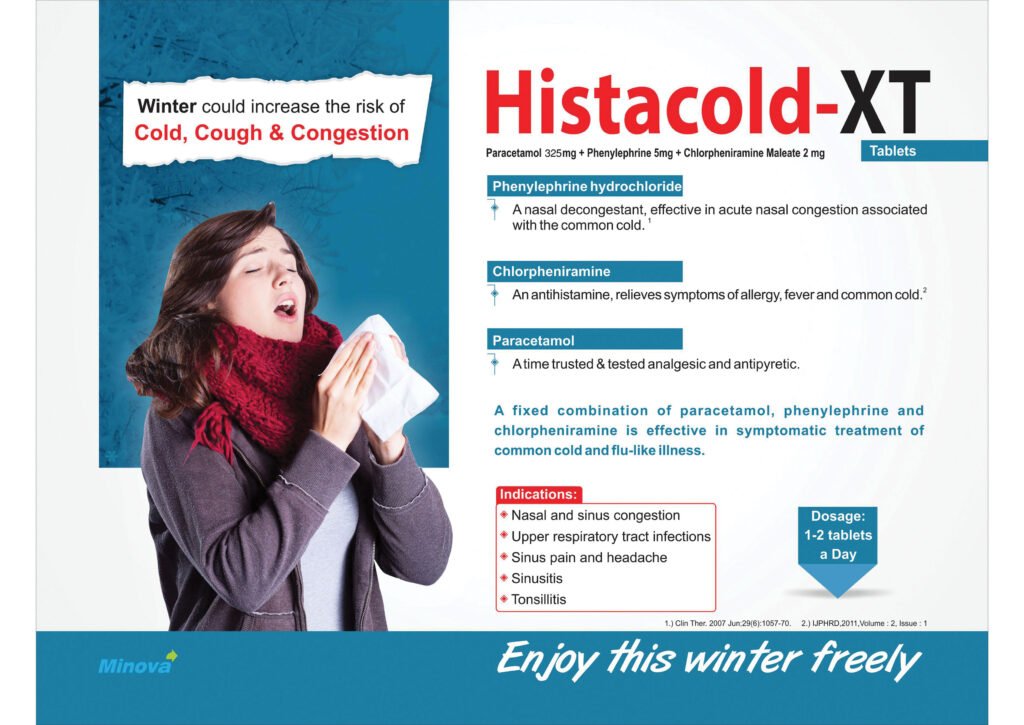 Seasonal changes often bring along discomforting symptoms such as runny nose, fever, nasal congestion, and body aches. For adults and teens who need faster recovery from colds, Histacold-XT Tablets from Minova Life Sciences offer a balanced, triple-action formula to combat all major symptoms—head-on.