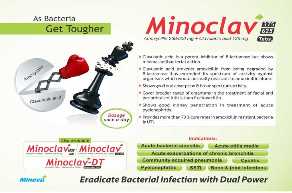 Minoclav DT Tablets offers quick dispersion and rapid absorption, making it an efficient solution for bacterial infections. With broad-spectrum action and resistance protection, it is a preferred choice for healthcare professionals.