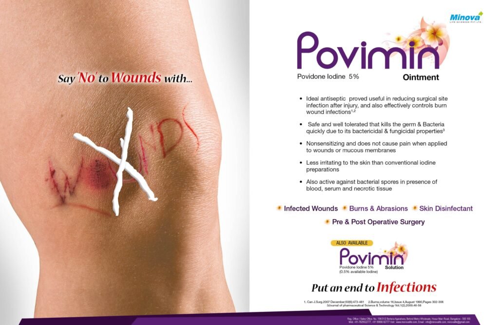 Povimin Ointment is a trusted antiseptic solution for effective wound care, burn treatment, and infection prevention. With its broad-spectrum antimicrobial action, it provides fast and long-lasting protection, making it a must-have for first-aid and medical use.