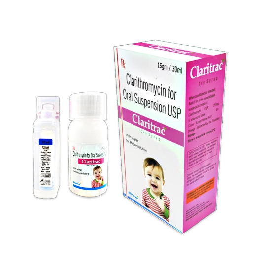 - Clarithromycin dry syrup was administered to the patients (150 patients with various infections) at daily doses of 10-15 mg/kg divided into 2-3 equal doses.Â