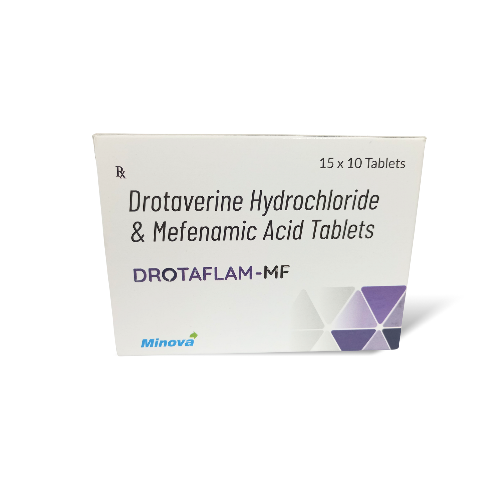 Drotaflam-MF Tablets are a clinically proven pain relief formulation designed to effectively reduce spasms, inflammation, and discomfort caused by menstrual cramps, abdominal colic, and gynecological conditions. It provides fast-acting relief for dysmenorrhea, biliary and renal colic, pelvic inflammatory disease (PID), and pain after intrauterine contraceptive device (IUCD) insertion.